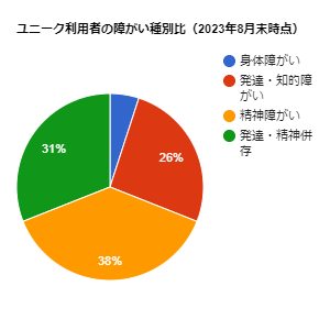 特定の障がいに偏らず、幅広くご利用いただいています。