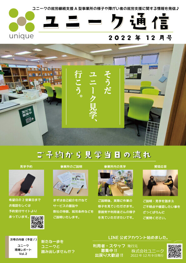 今回は、ユニーク通信(2022年12月号)【そうだ ユニーク見学、行こう。】のWEB編集版記事です。