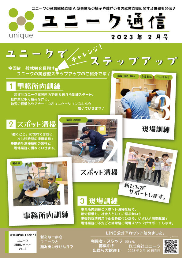 今回は、ユニーク通信(2023年2月号)【ユニークで\チャレンジ!/ステップアップ!】のWEB編集版記事です。