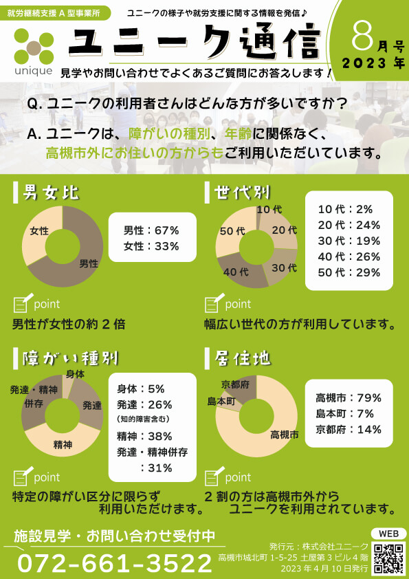 今回は、ユニーク通信(2023年8月号)【ユニークの利用者さんはどんな方が多いですか?】のWEB編集版記事です。